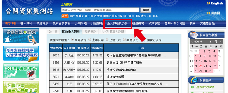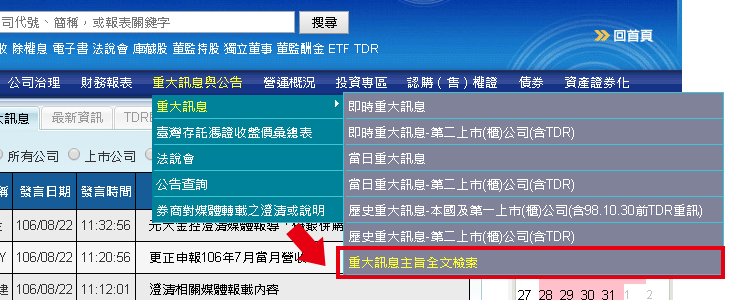 步驟3:選擇重大訊息>重大訊息主旨全文檢索