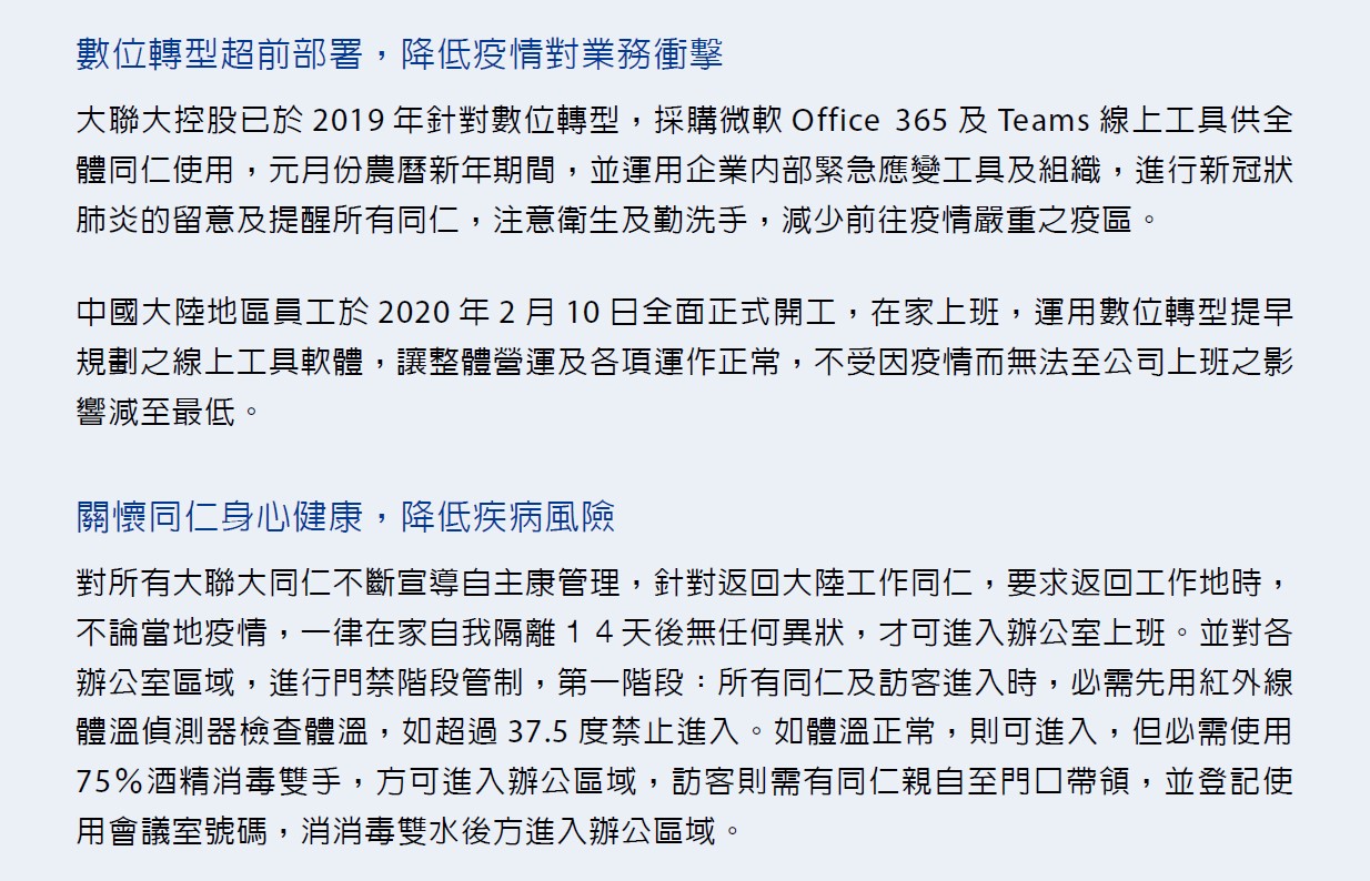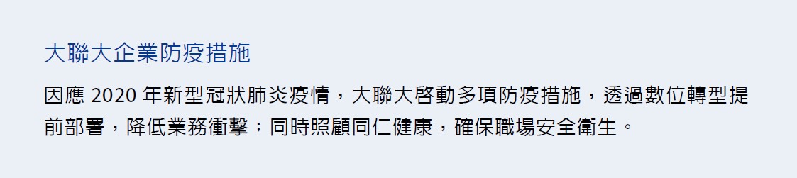 2020 遵循「大聯大控股企業防疫措施」進行